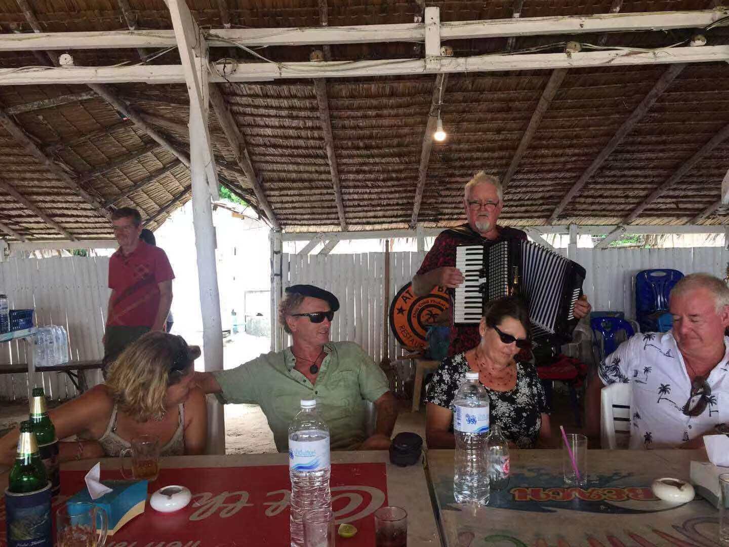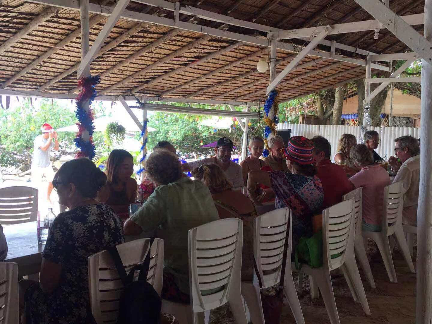 “中午在岸上我们要举行圣诞午餐派对,500铢一人,你们要加入我们吗?”老人指着对岸的餐厅。