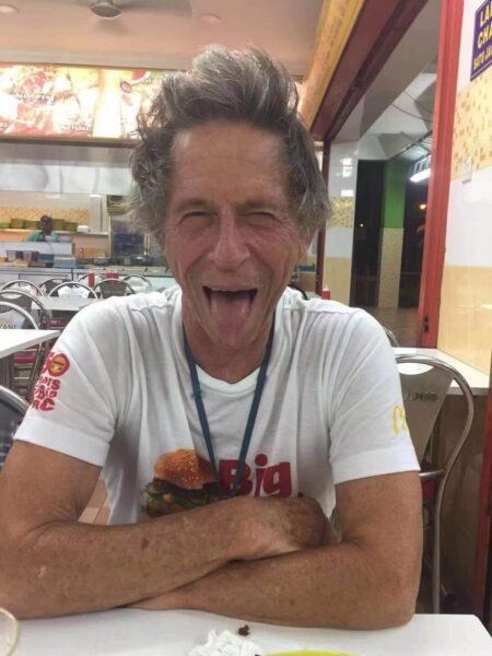 起初我并不以为然,因为像Craig这么大年龄生活在船上的大有人在,我已经见怪不怪了。不过有时候缘分就是这么奇妙,我们离开普吉后没几天Dilly Dally也来到了兰卡威,并且又停在同一个锚地相邻不远的地方,接着又因为各自要修船的原因我们又一起来到了Pangkor marina。这就更热闹了,隔三岔五我们就在一起吃饭聊天,每天看着Craig 在船上忙的不亦乐乎,爬桅杆、修做水机、上岸加淡水(即便做水机修好了他还是要跑去接水,因为他闲不下来)……我是真能感受到他是多么的享受这种生活!如鱼得水……在75岁的年纪,一个在中国称之为安享晚年的年龄,却逃离陆地上的舒适区,去开启人生的又一段冒险,这需要何等的热爱和执着呢!而燕姐,一个经济独立而又受中国传统文化熏陶的女人,不仅没有阻止Craig的想法,为了丈夫热爱的生活也毅然放弃陆地上舒服的日子,过着这种没有空调、天天太阳晒加海风吹,连洗个澡都要算计着水的生活,又是何等的难得呢!